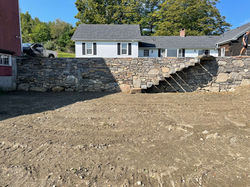 These cantilevered steps started out as a teardown and rebuild of an old farm wall. Right before we started the client saw some stiles in a low wall and asked if it would be possible to do a similar thing here. Coincidentally, I had just acquired 8 eight foot long pillars that were holding up an old barn on the other side of town. You can see in the progress shots, a fair amount of backtracking and it was worth it. Thanks to Chris Rawlings and Waterhouse Pools for the help.